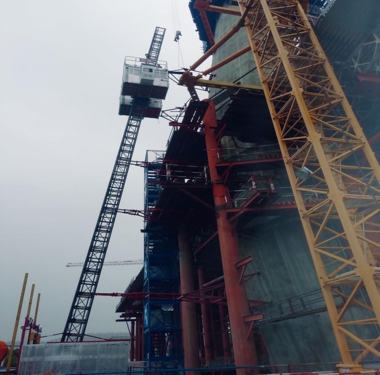 近日,廊坊凱博建設(shè)機(jī)械科技有限公司生產(chǎn)的斜、直線兩用施工升降機(jī)順利投入到廣東佛山“三水三橋”項(xiàng)目。此類型升降機(jī)承重架和吊籠經(jīng)過特殊設(shè)計(jì),角度變化范圍為0~15°,在不增加任何部件的情況下,通過簡單操作即可實(shí)現(xiàn)斜、直線轉(zhuǎn)換。斜線運(yùn)行時(shí),吊籠始終保持水平,角度為0時(shí),該機(jī)可做為普通直線升降機(jī)使用,吊籠尺寸和提升速度可根據(jù)用戶要求定制。該設(shè)備廣泛應(yīng)用于煙囪、橋梁等建筑工程。